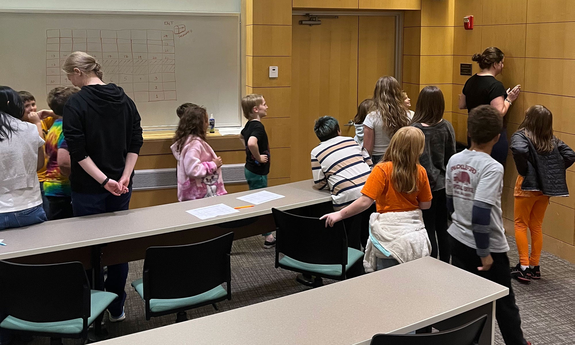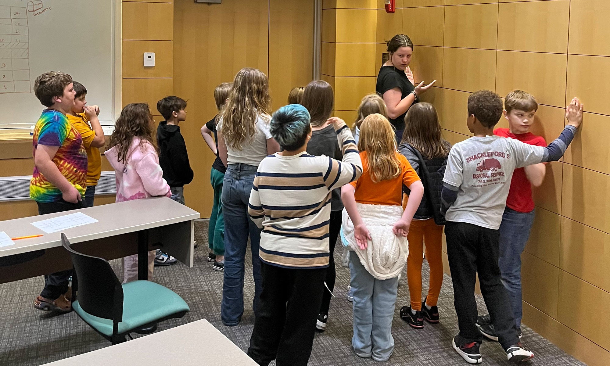 Members of Denison’s Women in Numbers Initiative (WiNI) took part in Denison’s Service Day this November, working with a group of about 20 second- to fifth-grade students from Newark City Schools for an afternoon of hands-on exploration in math, computer science, and data analytics.