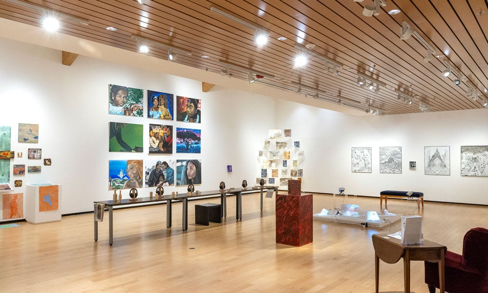 A wide variety of work will be exhibited, including paintings, prints, illustrations, sculpture, and digital media. The topics address diverse themes, such as personal experience, home, the environment, fictional universes, and more. The work in this exhibition also pauses to notice, taking seemingly small moments, overlooked ideas, or fleeting anxieties and making them large — demanding attention, exaggerating, and transforming. In doing so, these works respond to one another with a sense of urgency and play, as if conversing, you made that up to scare me.